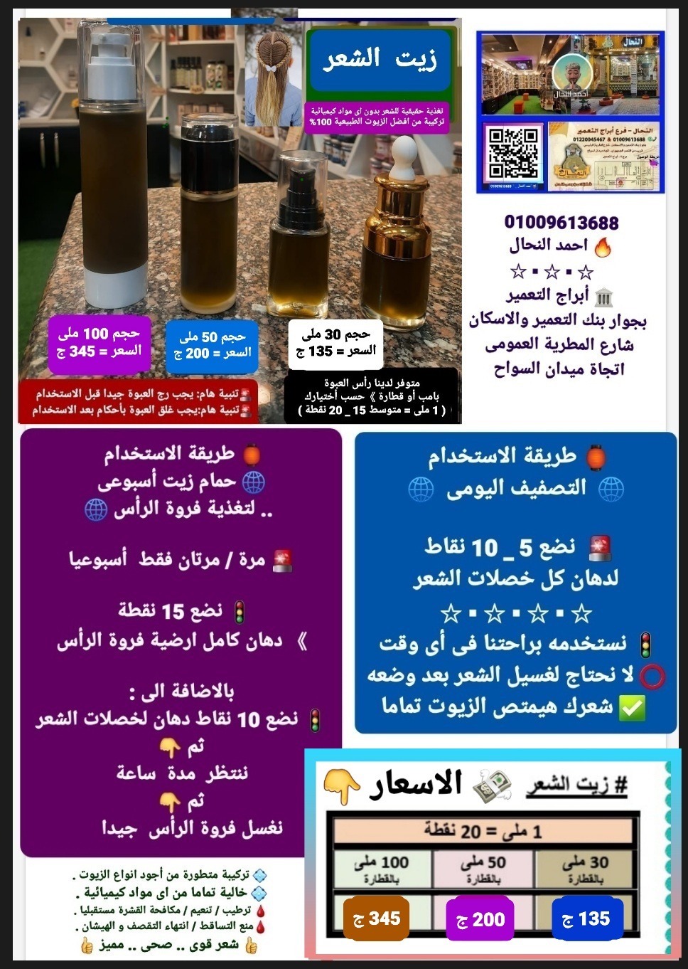 لدينا : 🥳 زيت شعر 🥳 تغذية حقيقية 🥳